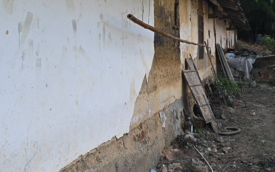 房屋完整,部分瓦片脱落、屋内部分裙板损坏